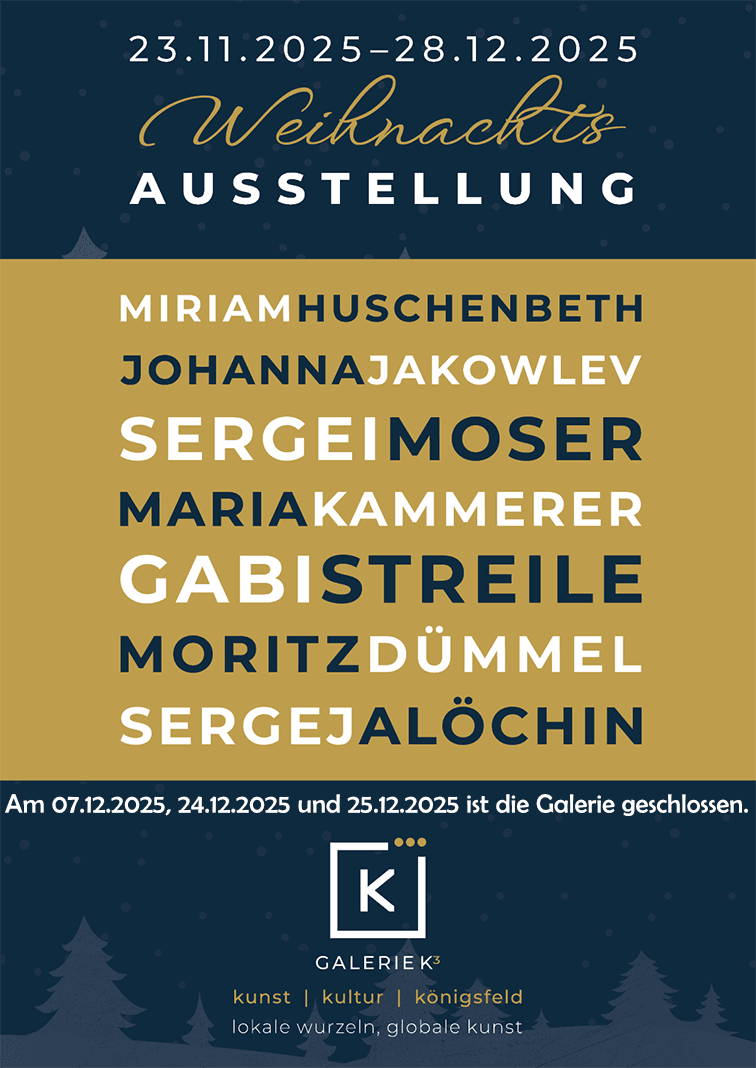 Wenn die Tage kürzer werden, beginnt in der Galerie K³ die vielleicht schönste Zeit des Jahres: Kunst trifft auf Winterlicht, Farbe auf Besinnlichkeit – und alles ist durchzogen von jener feinen Magie, die nur die Kunst zu schenken vermag. Die diesjährige Weihnachtsschau vereint Positionen aus Malerei, Grafik und Objektkunst zu einem vielstimmigen, atmosphärischen Dialog.