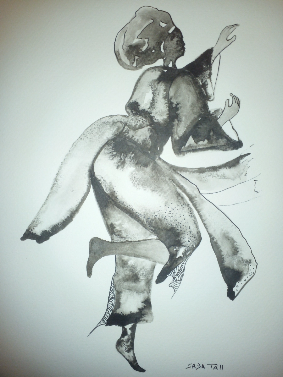 Sada Tall, La danseuse, Tinte auf Papier, 2025, 30x40 cm, mit Rahmen